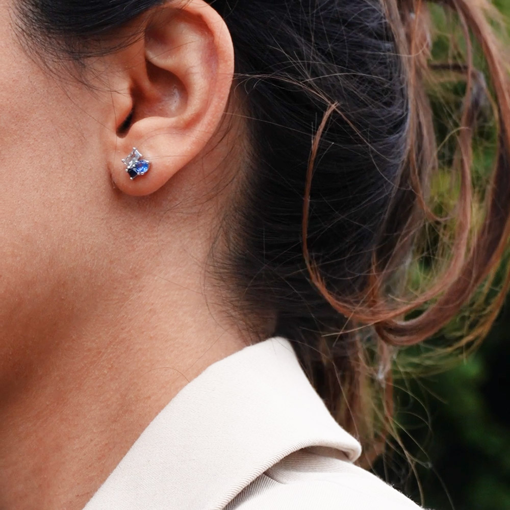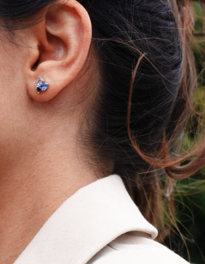 Conçues pour les oreilles percées, ces boucles d’oreilles à l’accord parfait entre l’argent et le Bleu sauront illuminer la femme audacieuse et singulière qui est en vous !