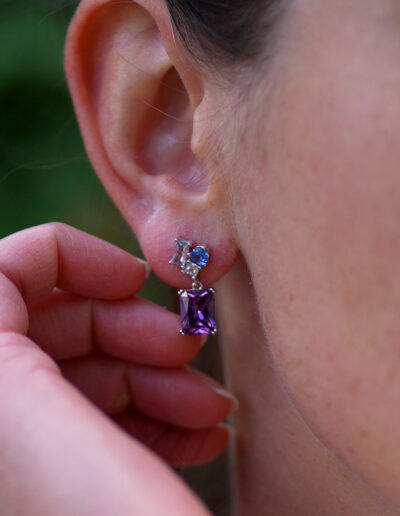 Conçues pour les oreilles percées, ces boucles d’oreilles à l’accord parfait entre l’argent et le Violet, bleu, blanc sauront illuminer la femme audacieuse et singulière qui est en vous !