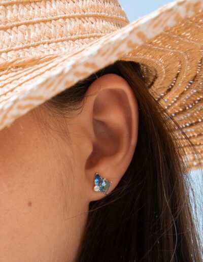 Conçues pour les oreilles percées, ces boucles d’oreilles à l’accord parfait entre l’argent et le Bleu & blanc sauront illuminer la femme audacieuse et singulière qui est en vous !