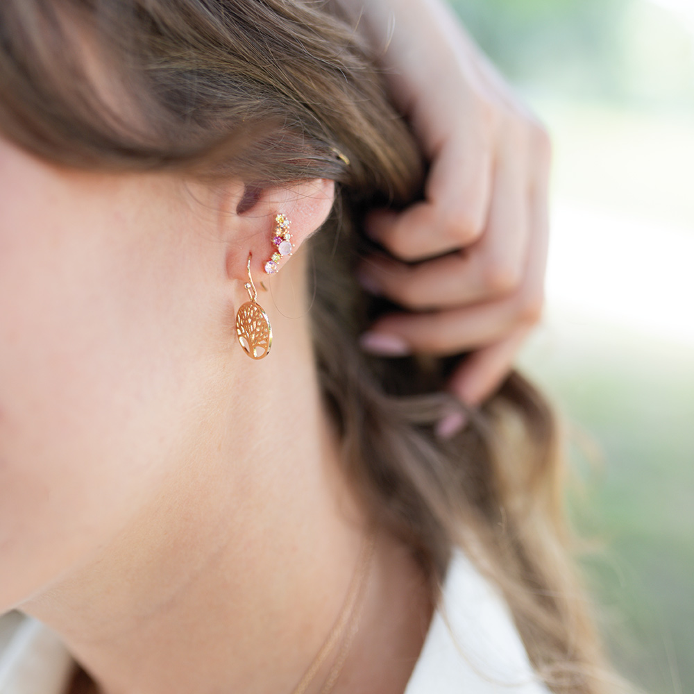 Conçues pour les oreilles percées, ces boucles d’oreilles à l’accord parfait entre le plaqué or et le Multicolore sauront illuminer la femme audacieuse et singulière qui est en vous !