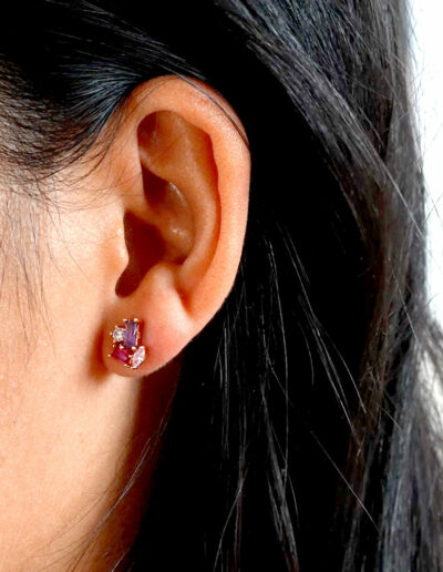 Conçues pour les oreilles percées, ces boucles d’oreilles à l’accord parfait entre le plaqué or et le Fuschia & violet sauront illuminer la femme audacieuse et singulière qui est en vous !