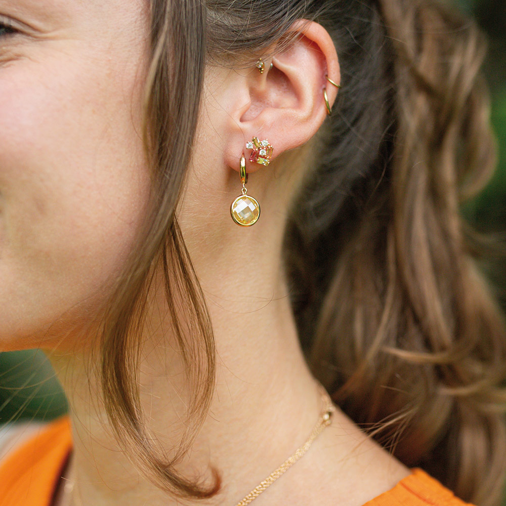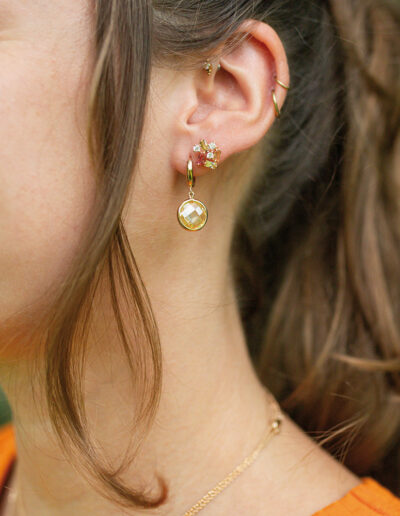 Conçues pour les oreilles percées, ces boucles d’oreilles à l’accord parfait entre le plaqué or et le Multicolore sauront illuminer la femme audacieuse et singulière qui est en vous !