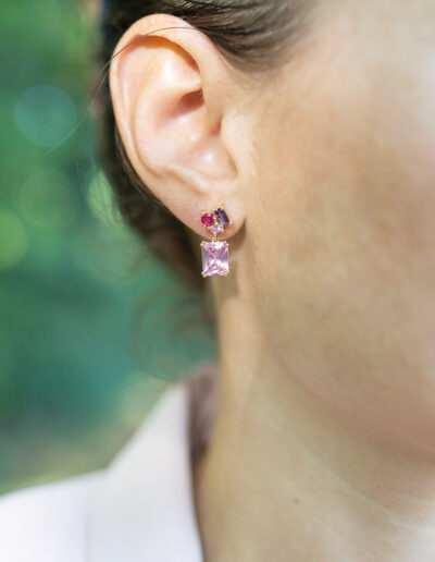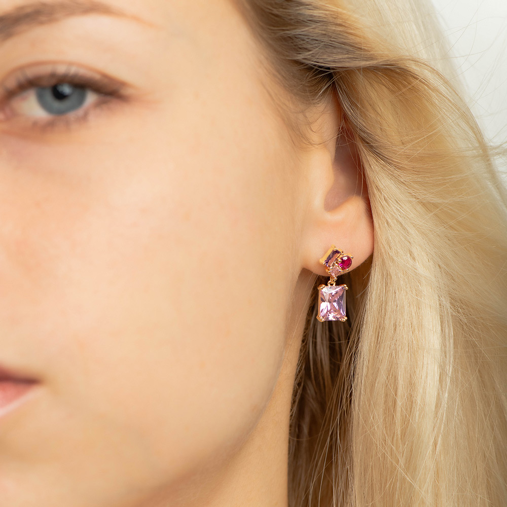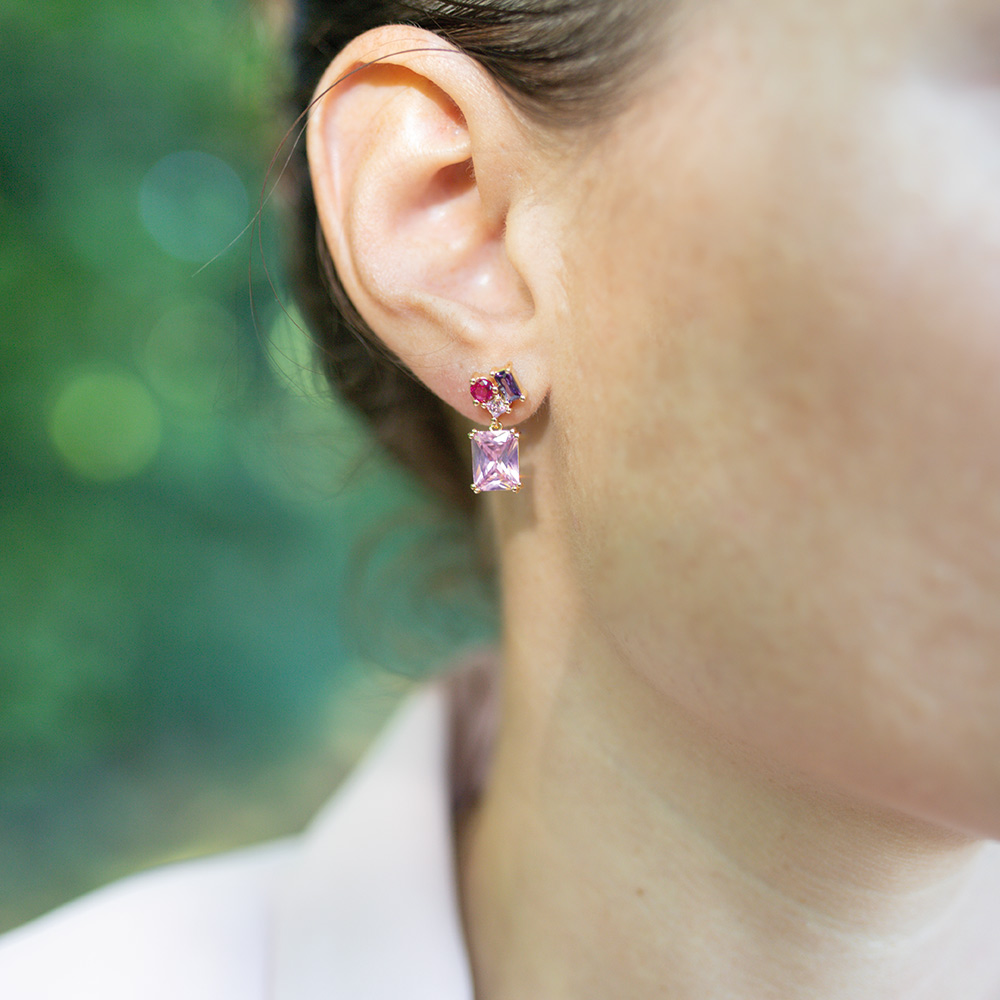 Conçues pour les oreilles percées, ces boucles d’oreilles à l’accord parfait entre le plaqué or et le Violet, rose, fuschia sauront illuminer la femme audacieuse et singulière qui est en vous !