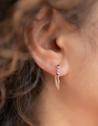 Conçues pour les oreilles percées, ces boucles d’oreilles à l’accord parfait entre le plaqué or et le Fuschia, violet, bleu sauront illuminer la femme audacieuse et singulière qui est en vous !