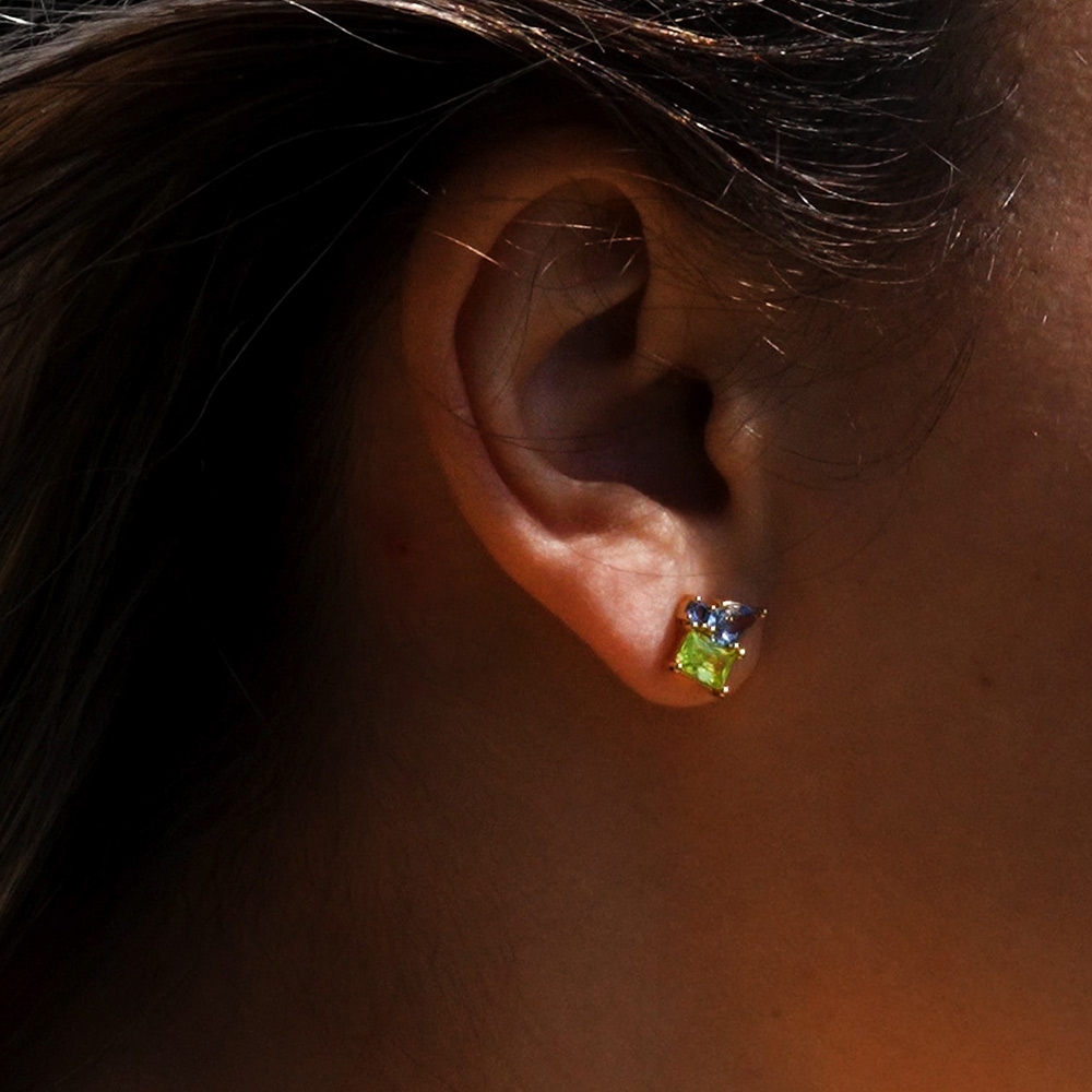 Conçues pour les oreilles percées, ces boucles d’oreilles à l’accord parfait entre le plaqué or et le Vert & bleu sauront illuminer la femme audacieuse et singulière qui est en vous !