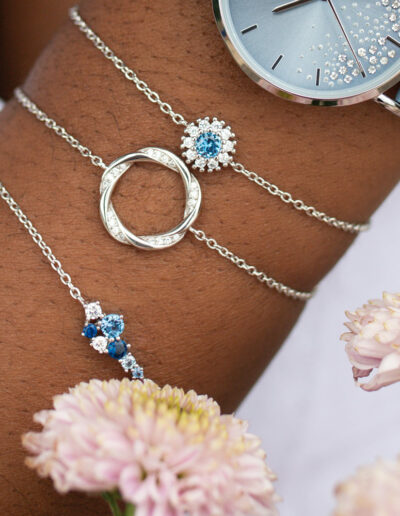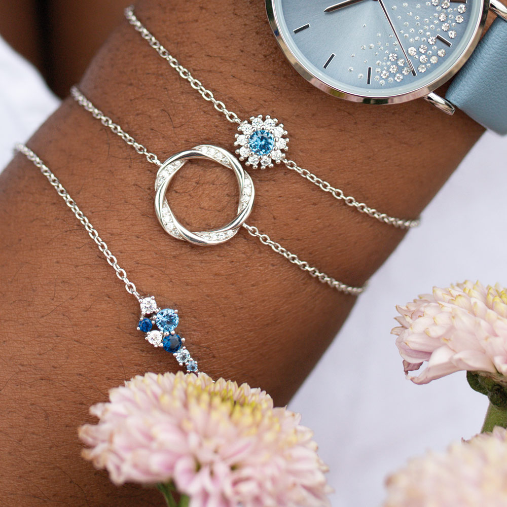 Ce bracelet 601574 unique et éclatant au mariage harmonieux entre l’argent et le Bleu sera un vrai coup de cœur ! Il est un cadeau idéal à se faire à soi-même ou à offrir pour célébrer l’instant présent. Vous pourrez l’assortir au gré de vos envies à nos colliers et boucles d’oreilles .