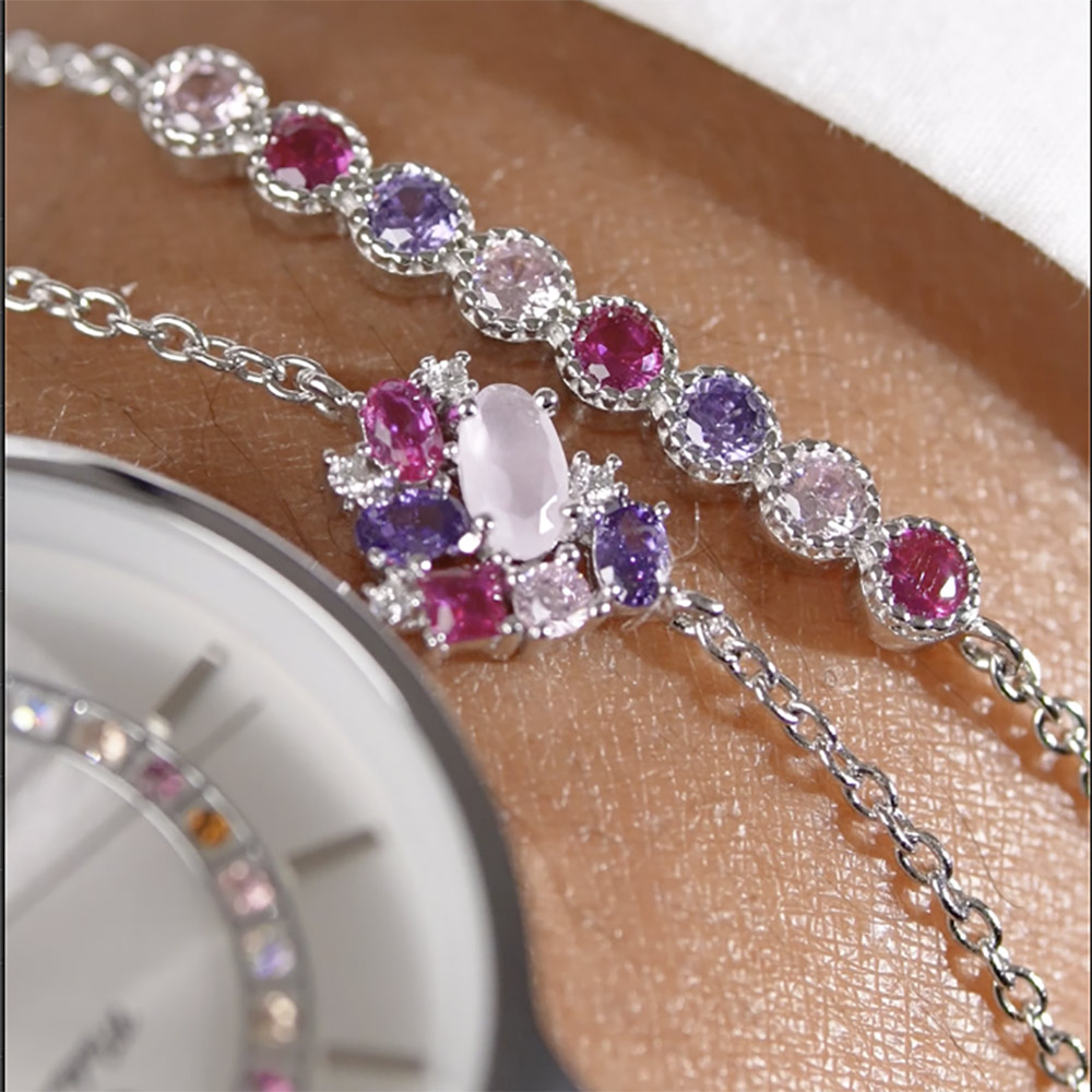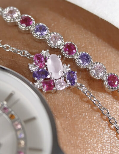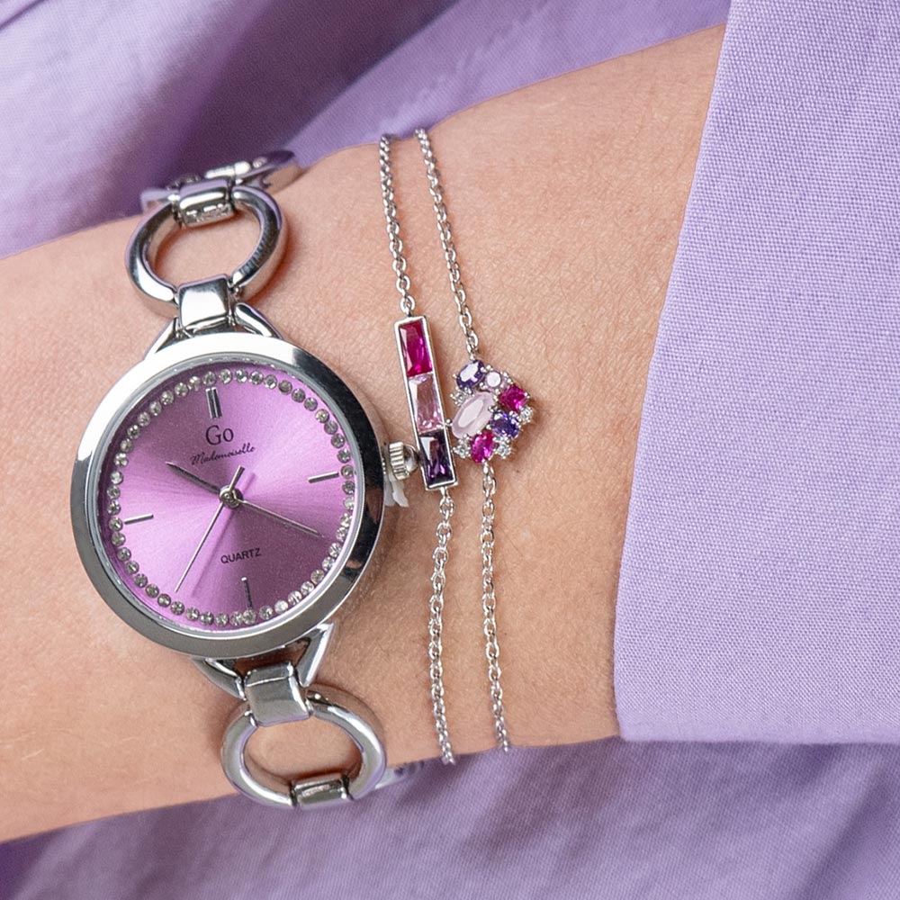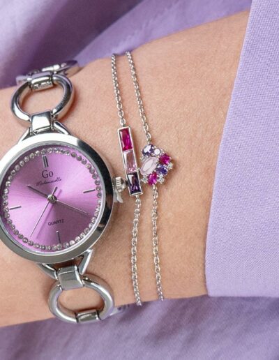 Ce bracelet 601575 unique et éclatant au mariage harmonieux entre l’argent et le Fuschia & violet sera un vrai coup de cœur ! Il est un cadeau idéal à se faire à soi-même ou à offrir pour célébrer l’instant présent. Vous pourrez l’assortir au gré de vos envies à nos colliers et boucles d’oreilles .