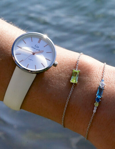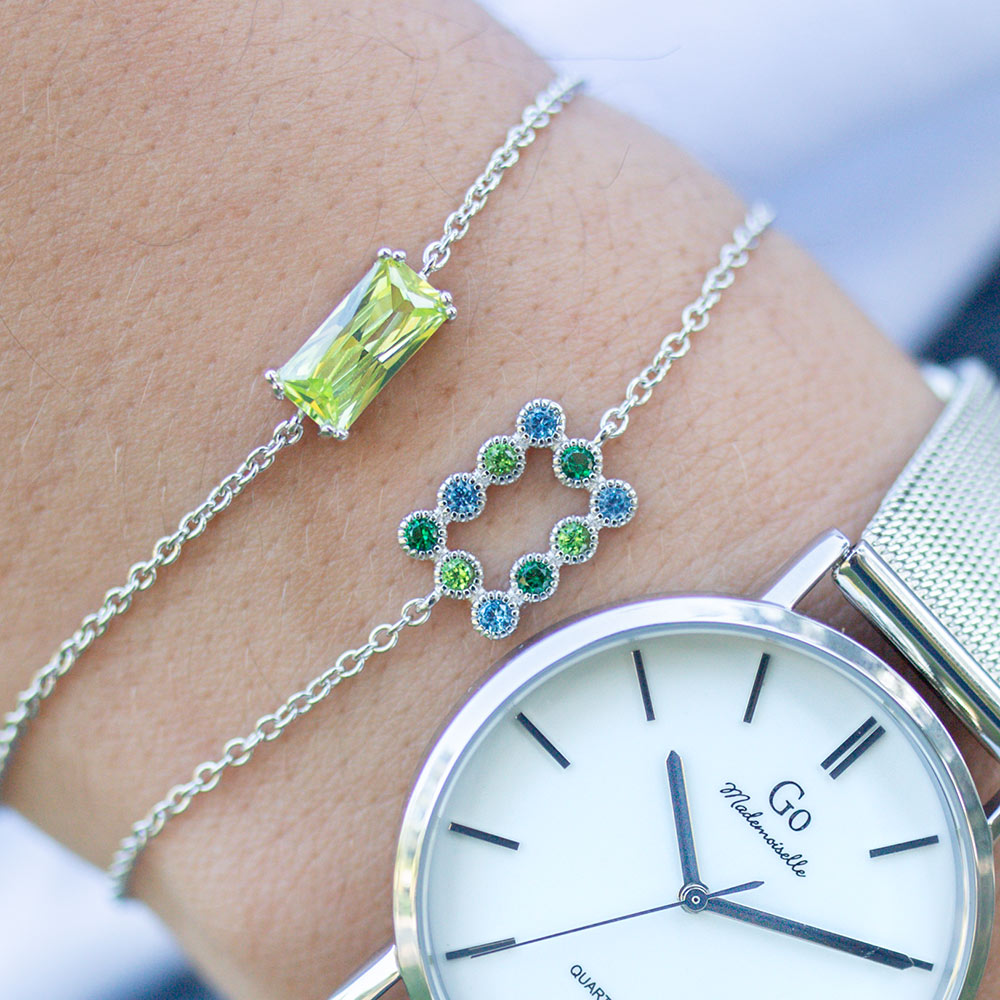 Ce bracelet 601598 unique et éclatant au mariage harmonieux entre l’argent et le Vert sera un vrai coup de cœur ! Il est un cadeau idéal à se faire à soi-même ou à offrir pour célébrer l’instant présent. Vous pourrez l’assortir au gré de vos envies à nos colliers et boucles d’oreilles .