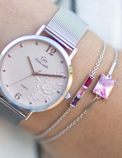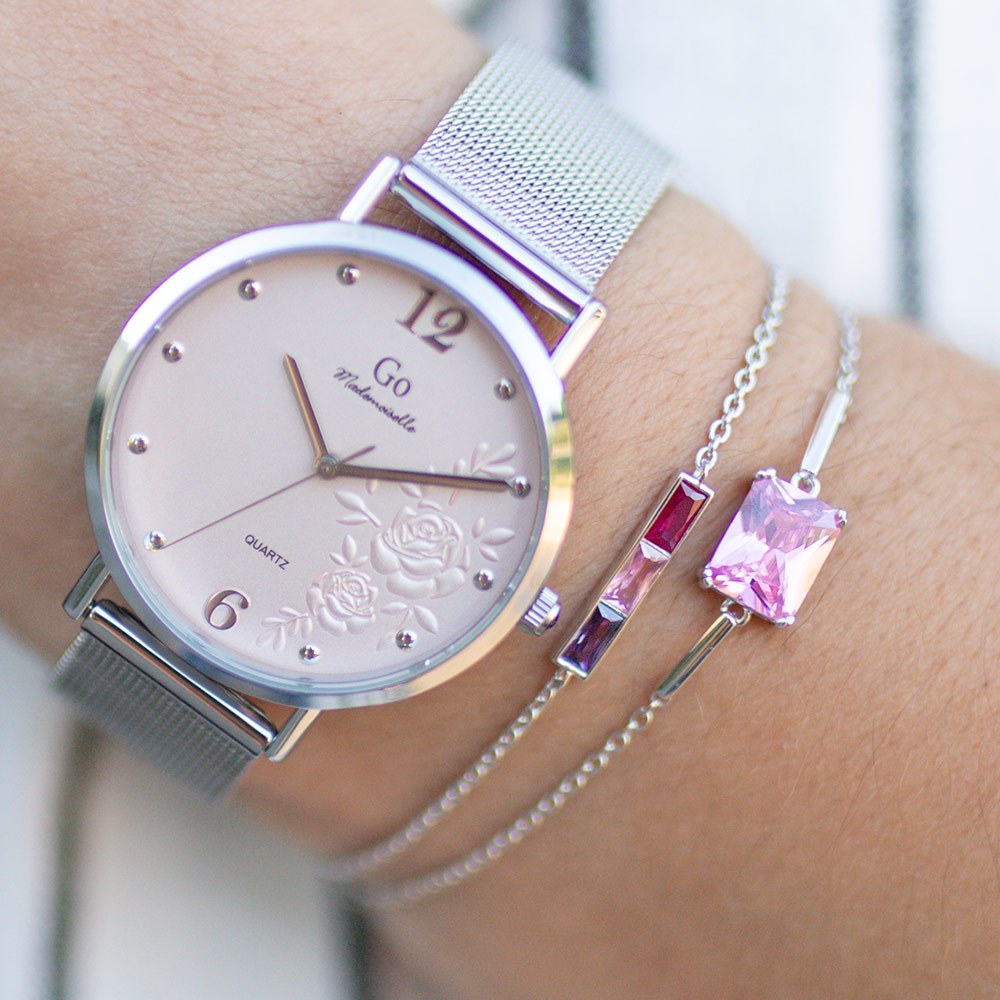 Offrez nos montres et nos bijoux avec charme et élégance grâce à nos jolis écrins aux teintes rosées signés GO Mademoiselle.