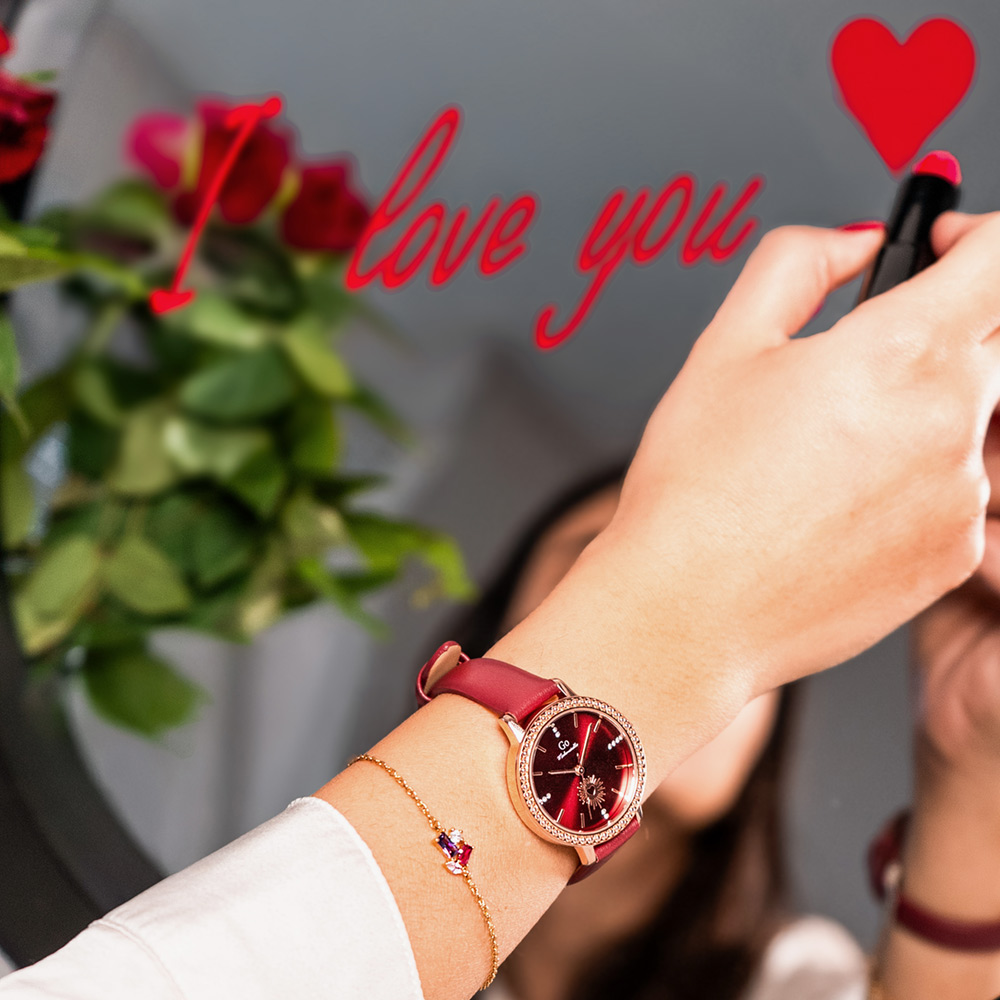 Offrez nos montres et nos bijoux avec charme et élégance grâce à nos jolis écrins aux teintes rosées signés GO Mademoiselle.