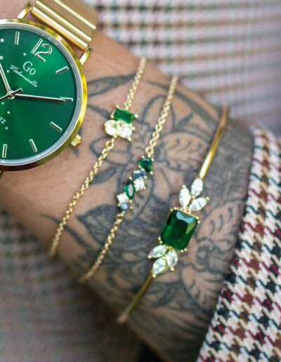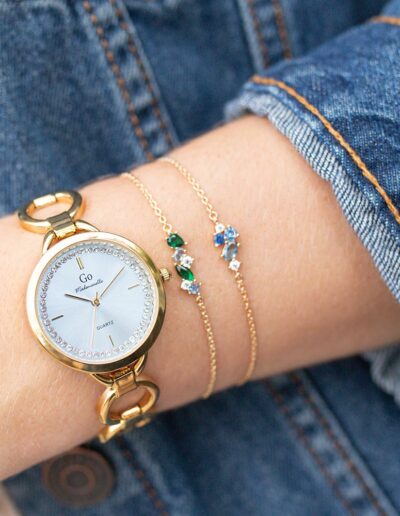 Ce bracelet 605605 unique et éclatant au mariage harmonieux entre le plaqué or et le Vert, bleu, blanc sera un vrai coup de cœur ! Il est un cadeau idéal à se faire à soi-même ou à offrir pour célébrer l’instant présent. Vous pourrez l’assortir à votre guise à nos colliers et boucles d’oreilles .