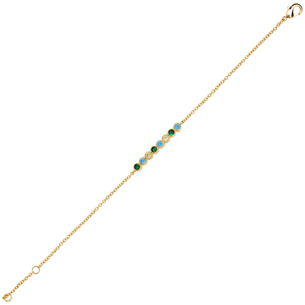 Ce bracelet 605617 unique et éclatant au mariage harmonieux entre le plaqué or et le Vert & bleu sera un vrai coup de cœur ! Il est un cadeau idéal à se faire à soi-même ou à offrir pour célébrer l’instant présent. Vous pourrez l’assortir à votre guise à nos colliers et boucles d’oreilles .