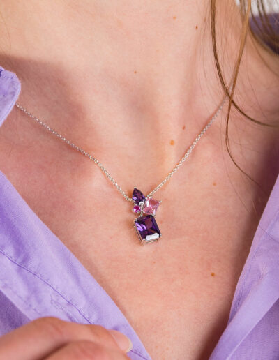 Cette ravissante création 600118 aux couleurs vives de notre collection de bijoux GO Mademoiselle La Vie En Go ne manquera pas de vous faire tourner la tête ! Elle est une invitation à une union exquise entre l’argent et les pierres Violet & rose.