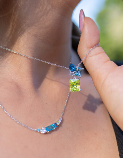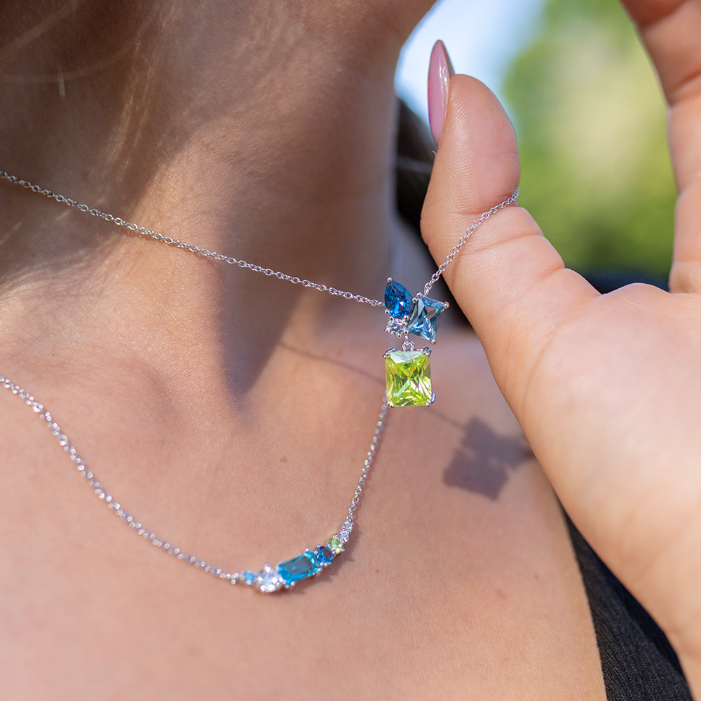 Cette ravissante création 600124 aux couleurs vives de notre collection de bijoux GO Mademoiselle La Vie En Go ne manquera pas de vous faire tourner la tête ! Elle est une invitation à une union exquise entre l’argent et les pierres Vert, bleu, blanc.