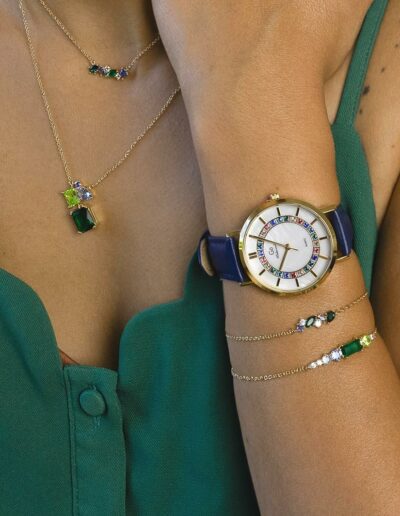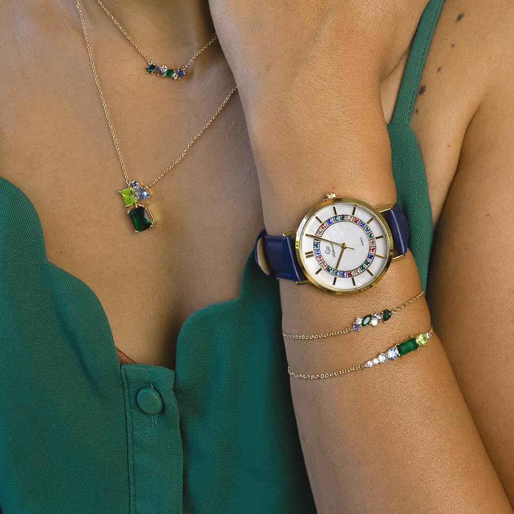 Cette ravissante création 604109 aux couleurs vives de notre collection de bijoux GO Mademoiselle La Vie En Go ne manquera pas de vous faire tourner la tête ! Elle est l’union exquise entre le plaqué or et les pierres Blanc, émeraude, ceylan.