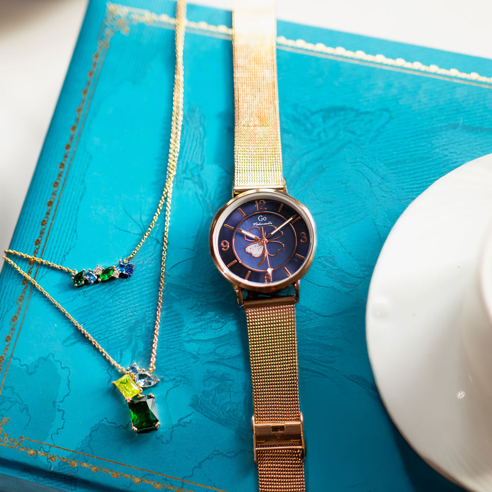 Offrez nos montres et nos bijoux avec charme et élégance grâce à nos jolis écrins aux teintes rosées signés GO Mademoiselle.