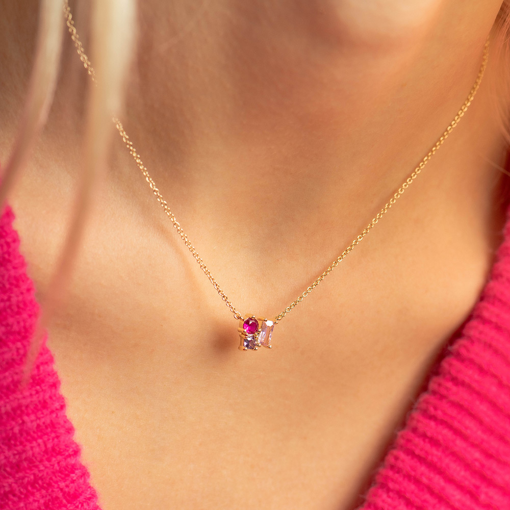 Cette ravissante création 604112 aux couleurs vives de notre collection de bijoux GO Mademoiselle La Vie En Go ne manquera pas de vous faire tourner la tête ! Elle est l’union exquise entre le plaqué or et les pierres Violet, rose, fuschia.