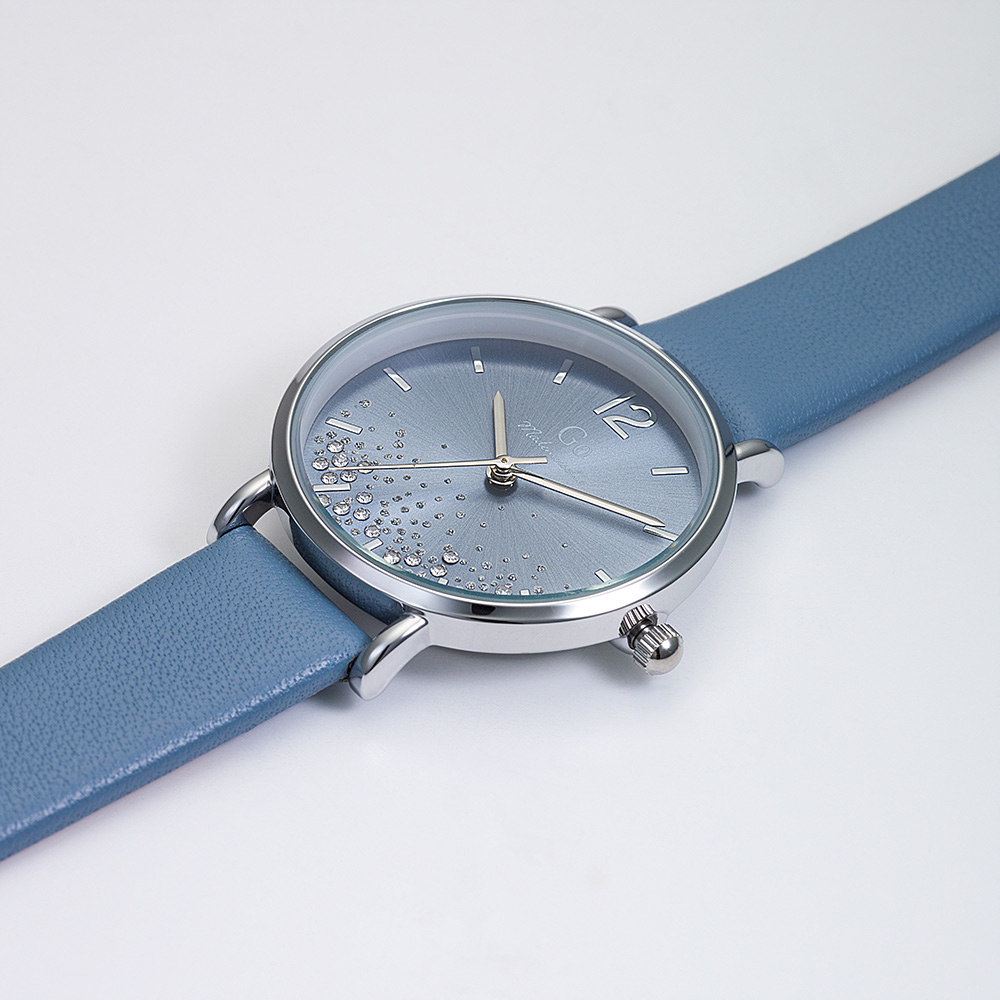 ECLATS D'ETOILES - 699364Montre Femme Boîtier Argenté Bracelet Cuir Bleu – 699364