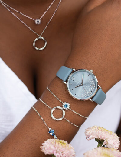 Montre Femme Boîtier Argenté Bracelet Cuir Bleu – 699457