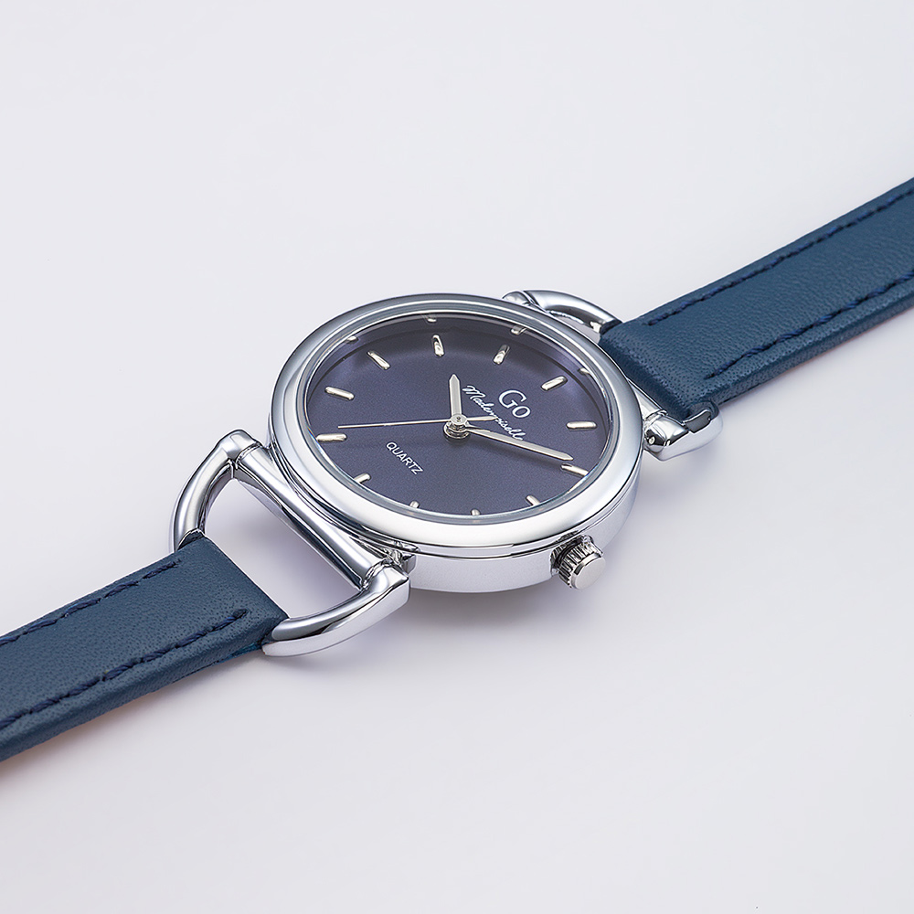 Montre Femme Boîtier Argenté Bracelet Cuir Bleu – 699628