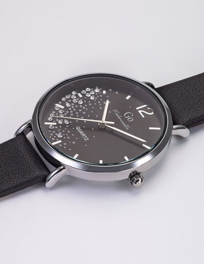 Notre montre Go Mademoiselle 699355 au total look noir deviendra l’accessoire indispensable pour compléter toutes vos tenues ! Son boîtier argenté de 36 mm de diamètre affiche de jolies lignes arrondies et abrite un cadran noir élégant et raffiné. Survolé par de fines aiguilles de couleur argentée, il est décoré d’étincelants petits cristaux, à la manière d’une pluie d’étoiles. Pour venir enlacer votre poignet avec confort, notre montre Go Mademoiselle 699355 de la ligne G-24h est dotée d’un intemporel bracelet en cuir d’un noirintense !