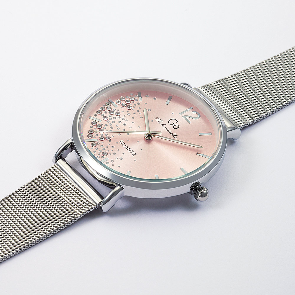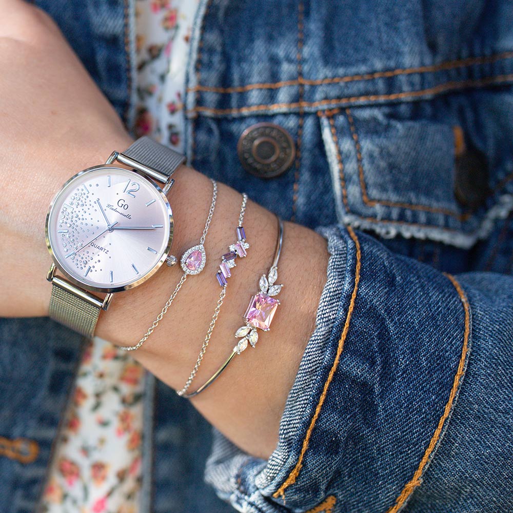 Offrez nos montres et nos bijoux avec charme et élégance grâce à nos jolis écrins aux teintes rosées signés GO Mademoiselle.