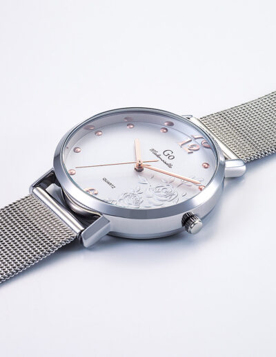 Un brin de candeur et un soupçon d’audace pour cette ravissante création 695548 de notre collection de montres GO Mademoiselle FLEURS ET PAPILLONS. Elle saura vous émerveiller par la beauté naturelle de son cadran Argenté orné de ravissants motifs. Elle est l’accord délicat entre un boitier aux courbes équilibrées en Métal-Argenté et un magnifique bracelet Argenté.