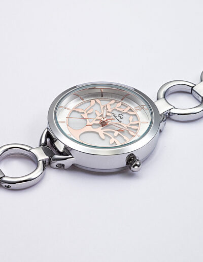 Cette élégante création 695555 de notre collection de montres GO Mademoiselle ARBRE DE VIE s’inspire des essences et des charmes de la nature. Elle saura vous accompagner dans tous vos précieux moments. Faites une pause… et admirez son cadran Argenté & nacré délicatement ciselé de ce symbole universel de protection, de sagesse et d’éternité. Ce mariage harmonieux entre un boitier aux douces courbes et un délicat bracelet Argenté vous fera succomber !