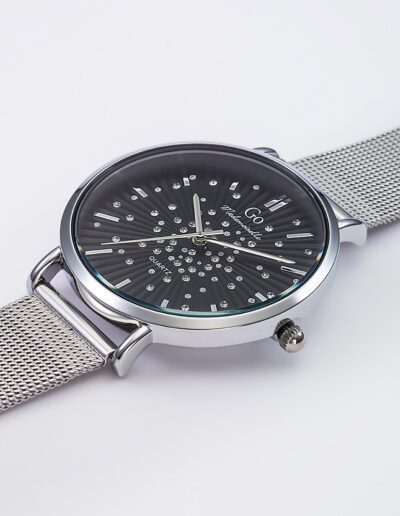 Cette création originale 695636 de notre collection de montres GO Mademoiselle ECLATS D’ETOILES est une invitation à contempler les constellations. Son ravissant cadran Noir est saupoudré d’une pluie d’étoiles. L’alliance entre un boitier aux courbes parfaites et un délicat bracelet Argenté font de ce modèle un choix divin.