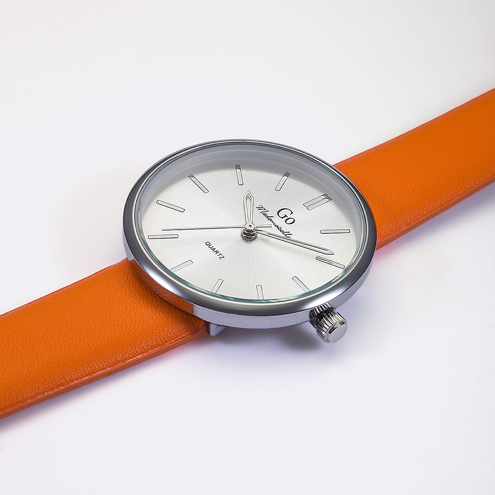 Montre Femme Boîtier Argenté Bracelet Synthétique Orange – 699345