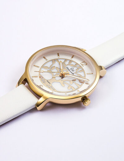 Montre Femme Boîtier Doré Bracelet Cuir Blanc – 699524