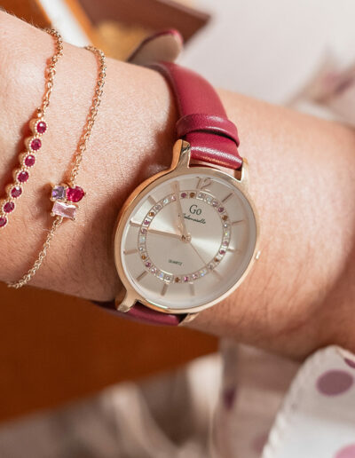 Cette ravissante création 699545 de notre collection de montres GO Mademoiselle SONGE DE CRISTAL est vraiment unique. Laissez-vous séduire par ses cristaux éclatants qui parent son cadran Champagne clair de reflets intenses et chatoyants. Elle est l’union parfaite entre un boitier aux jolies courbes et un délicat bracelet Bordeaux.