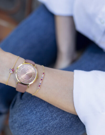Cette création originale 699602 de notre collection de montres GO Mademoiselle ECLATS D’ETOILES est une invitation à contempler les constellations. Son ravissant cadran Rose moyen est saupoudré d’une pluie d’étoiles. L’alliance entre un boitier aux courbes parfaites et un délicat bracelet Rose moyen font de ce modèle un choix divin.