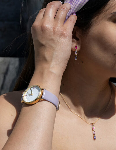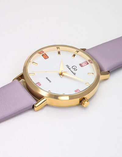 Laissez vous charmer par notre montre Go Mademoiselle 699421 ! Ce qui séduit au premier abord ? Ce sont ses 4 cristaux colorés qui viennent marquer midi, 3 heures, 6 heures et 9 heures. Ils rehaussent de leur éclat l’allure sobre de notre modèle et n’auront de cesse de scintiller à chaque mouvement de votre poignet. D’un blanc pur, son cadran niché dans sa boîte à l’éclat doré illuminera votre quotidien ! Le bracelet en cuir violet clair de notre montre GO Mademoiselle 699421 apportera quant à lui une touche fraîche à vostenues !