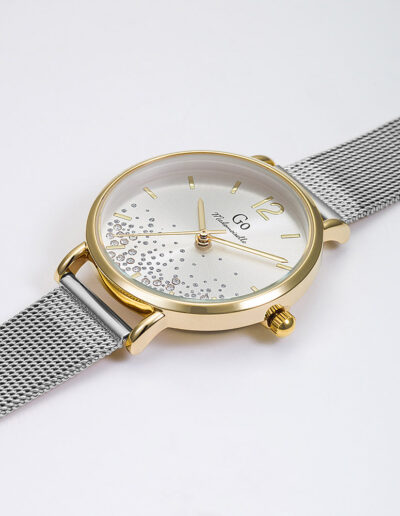 Montre Femme Boîtier Doré Bracelet Métal Argenté – 695576