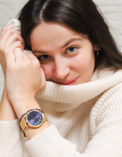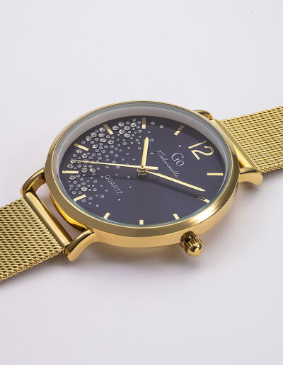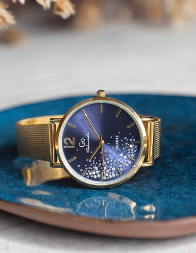 Le cadran de notre montre Go Mademoiselle 695355 de notre collection G-24h dégage un charme fou : il évoque une nuit étoilée dans un ciel d’été ! Sublimé par d’envoutants reflets soleillés, il est joliment décoré de petites poussières d’étoiles qui illumineront votre poignet à chacun de vos mouvement. Habillées d’un éclat doré, ses trois aiguilles offrent un confort de lecture de l’heure optimal. Alliant chic et élégance avec son bracelet en maille milanaise de couleur dorée, notre montre Go Mademoiselle 695355 vous deviendravite indispensable !