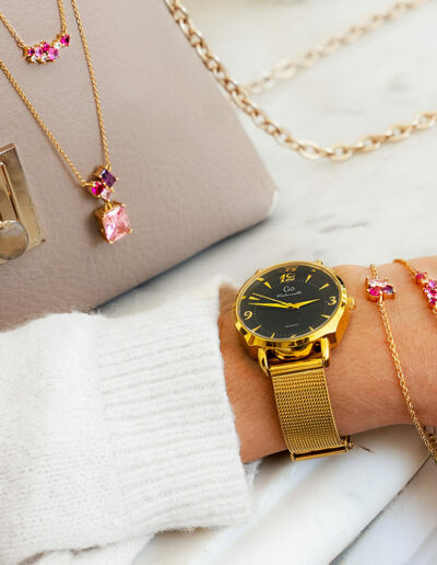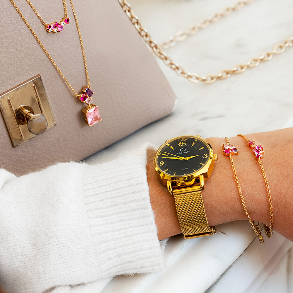 Offrez nos montres et nos bijoux avec charme et élégance grâce à nos jolis écrins aux teintes rosées signés GO Mademoiselle.