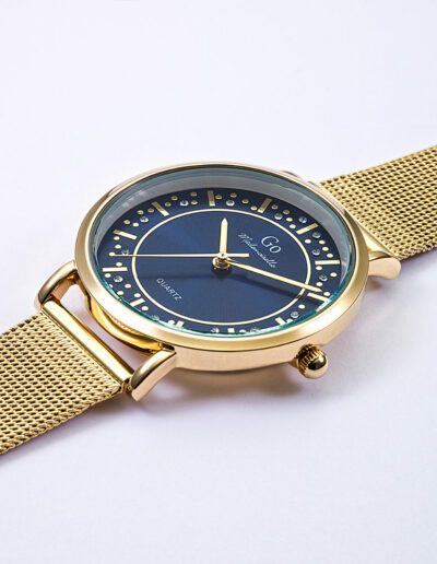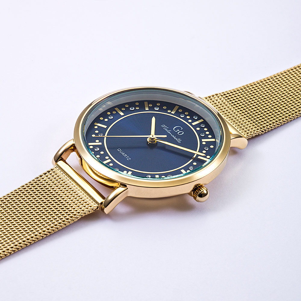 Cette création originale 695592 de notre collection de montres GO Mademoiselle ECLATS D’ETOILES est une invitation à contempler les constellations. Son ravissant cadran Bleu foncé est saupoudré d’une pluie d’étoiles. L’alliance entre un boitier aux courbes parfaites et un délicat bracelet Doré font de ce modèle un choix divin.