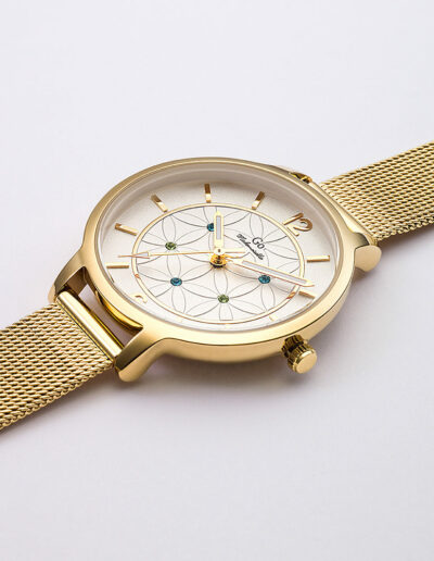 Un brin de candeur et un soupçon d’audace pour cette ravissante création 695607 de notre collection de montres GO Mademoiselle FLEURS ET PAPILLONS. Elle saura vous émerveiller par la beauté naturelle de son cadran Blanc argenté orné de ravissants motifs. Elle est l’accord délicat entre un boitier aux courbes équilibrées en Métal-Doré et un magnifique bracelet Doré.