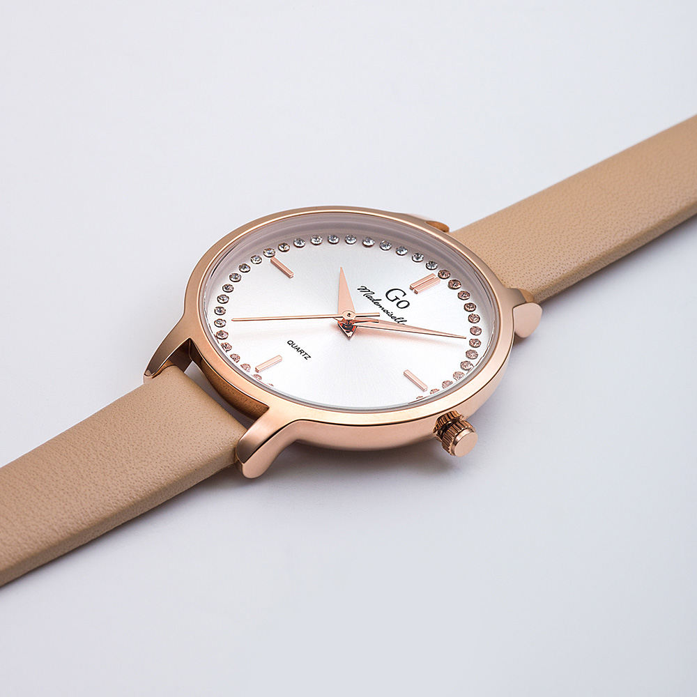 Montre Femme Boîtier Doré rose Bracelet Cuir Beige – 699497