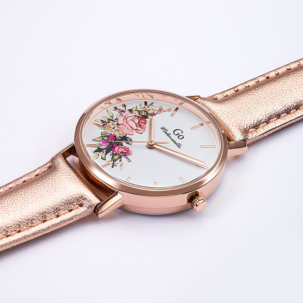 Offrez nos montres et nos bijoux avec charme et élégance grâce à nos jolis écrins aux teintes rosées signés GO Mademoiselle.