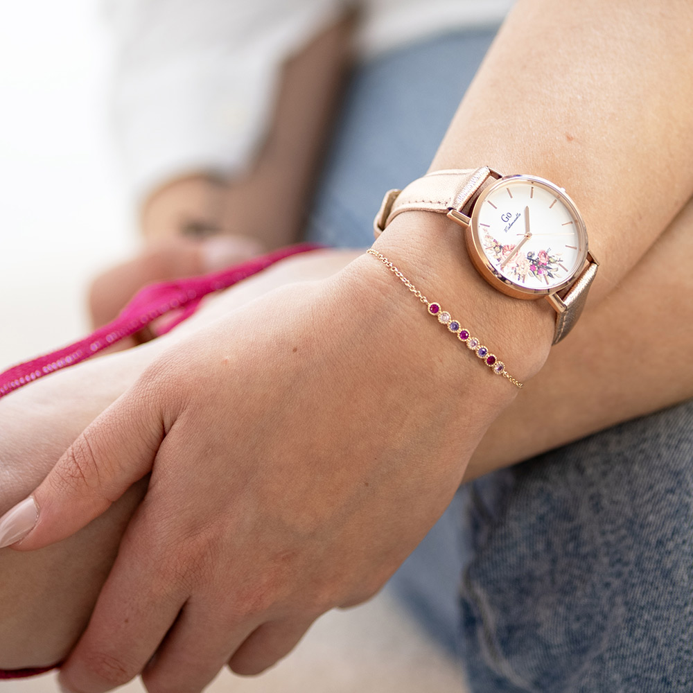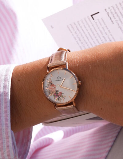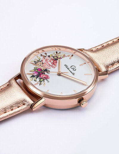 Un brin de candeur et un soupçon d’audace pour cette ravissante création 699594 de notre collection de montres GO Mademoiselle FLEURS ET PAPILLONS. Elle saura vous émerveiller par la beauté naturelle de son cadran Blanc orné de ravissants motifs. Elle est l’accord délicat entre un boitier aux courbes équilibrées en Métal-Doré rose et un magnifique bracelet Doré rose.