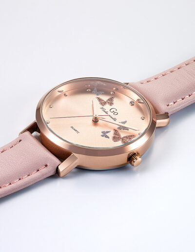 Un brin de candeur et un soupçon d’audace pour cette ravissante création 699539 de notre collection de montres GO Mademoiselle FLEURS ET PAPILLONS. Elle saura vous émerveiller par la beauté naturelle de son cadran Doré rose orné de ravissants motifs. Elle est l’accord délicat entre un boitier aux courbes équilibrées en Métal-Doré rose et un magnifique bracelet Rose clair.